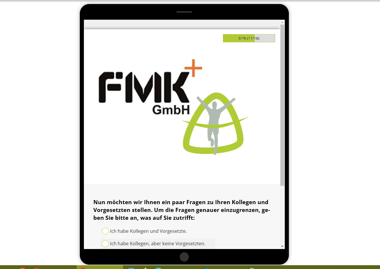 Im zweiten Schritt werden die Mitarbeitenden zu den zuvor festgelegten Themenfelder befragt. Dazu zählen zum Beispiel die aktuelle Gesundheit, verschiedene Belastungsfelder am Arbeitsplatz, Zufriedenheit oder Führung und Kommunikation. Die Erhebung erfolgt anonym und nach datenschutzrechtlichen Bestimmungen.
